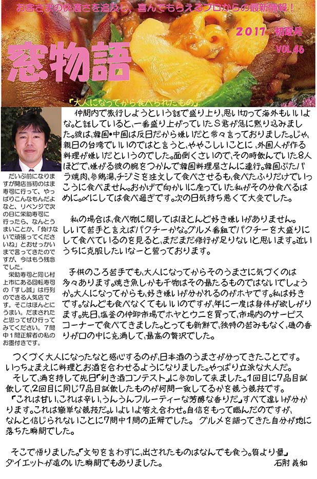 2017年3月8日 / 最終更新日時 : 2020年5月27日 ishizuki 窓物語vol.46【2017初夏号】 画像をクリックすると【窓物語vol.46 2017初夏号】をご覧頂けます。 BlueskyCopy
